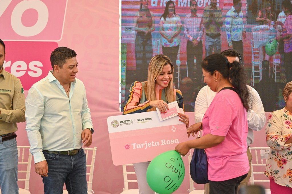 Tras la entrega simbólica de las primeras cinco Tarjetas Rosa, el Mandatario Estatal recordó a las potosinas que a través de este programa tendrán acceso a consulta médica general y medicamentos, consultas especializadas en ginecología, ocho medicamentos del cuadro básico, servicios de óptica, odontología y análisis clínicos, reafirmando que en San Luis Potosí sí hay apoyo a las mujeres potosinas y a sus hijas e hijos.