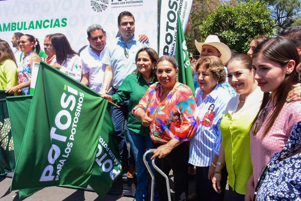 • En un evento encabezado por el Gobernador, Ricardo Gallardo Cardona, la Alcaldesa, Leonor Noyola recibió la unidad médica equipa que atenderá emergencias en el municipio.