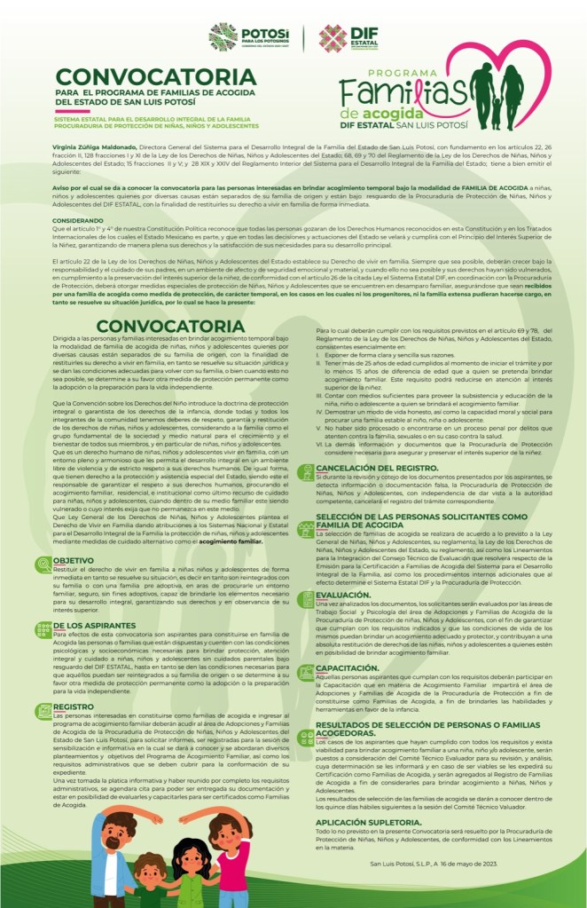 10 Julio 2023.- En San Luis Potosí sí hay apoyo en la protección de los derechos de niñas, niños y adolescentes bajo el resguardo de la Procuraduría de Protección de Niñas, Niños y Adolescentes (PPNNA), con el programa “Familias de Acogida”, para que en tanto se resuelve su situación jurídica, familias puedan brindarle un hogar, protección y cuidado.