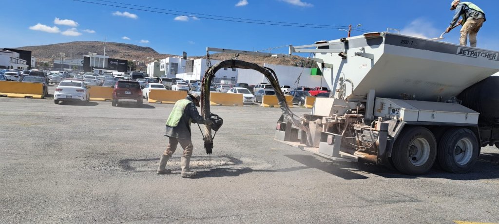 • La Junta Estatal de Caminos (JEC), realiza acciones en pintura y mantenimiento de estacionamientos, bacheo, deshierbe, en apoyo a brindar espacios inclusivos para las familias que acudan a mejor Feria de México