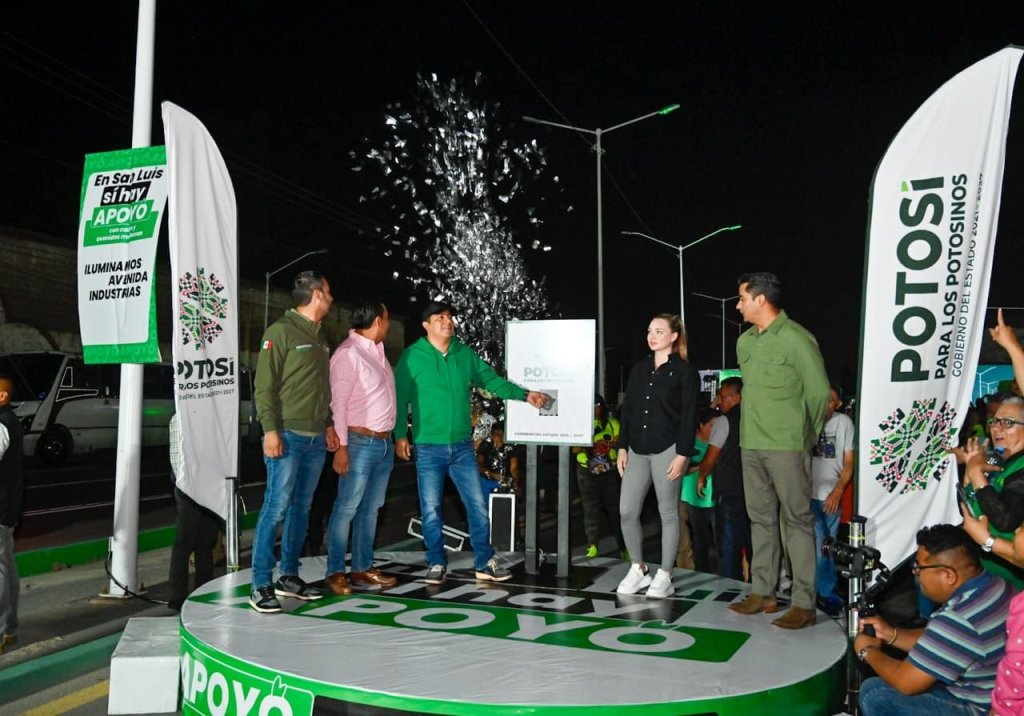 Como parte de las acciones del Gobierno de San Luis Potosí en apoyo a la seguridad y el desarrollo en la zona metropolitana, el Gobernador Ricardo Gallardo Cardona inauguró el alumbrado público en avenida Industrias, de Circuito Potosí al eje 124.