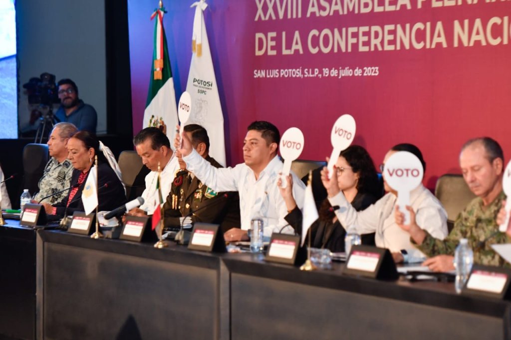 El Gobernador de San Luis Potosí Ricardo Gallardo Cardona, encabezó este miércoles la XXVII Asamblea Plenaria Nacional de Secretarios de Seguridad celebrada en la Entidad potosina, donde ratificó el compromiso y apoyo del Gobierno Estatal en la prevención y combate de los delitos, a fin de fortalecer las políticas públicas de seguridad en el país.