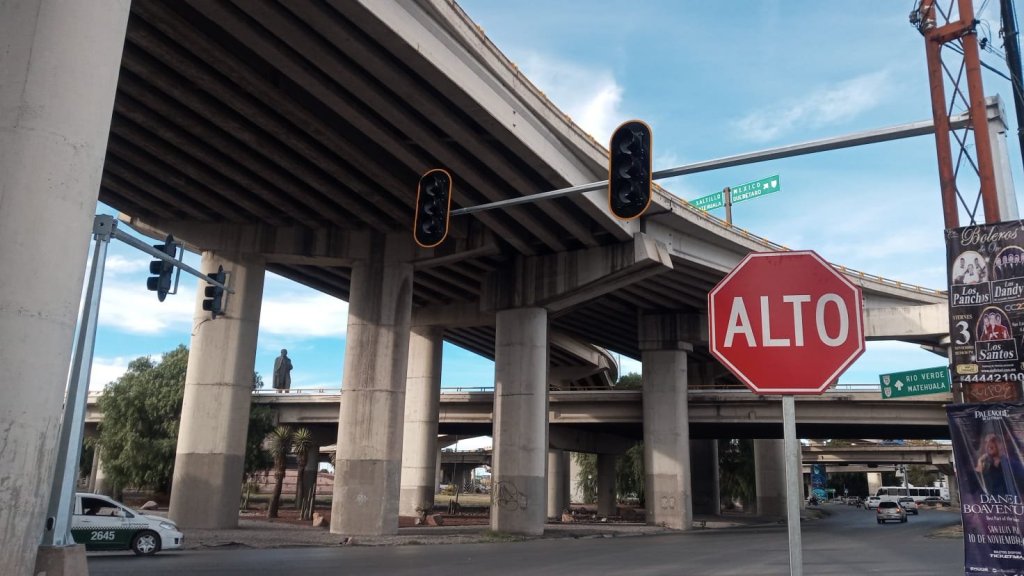 Luego de que el alcalde de la capital Enrique Galindo Ceballos colocara semáforos inteligentes en el distribuidor vial Benito Juárez en días pasados, el gobernador Ricardo Gallardo señaló que estos podrán traer más tráfico porque el distribuidor Juárez se construyó para que fluyera el tráfico en la zona.