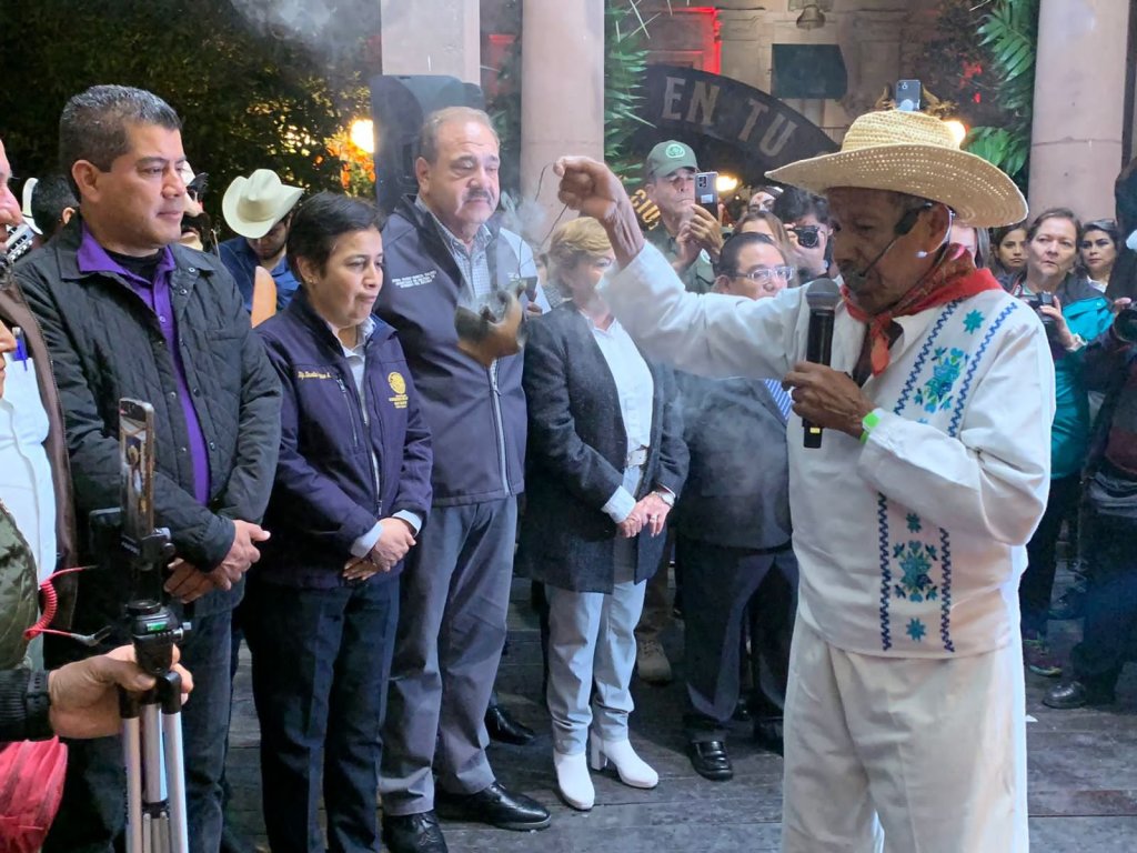 • Representantes de pueblos originarios de la Huasteca potosina realizan ritual de apertura en el kiosco de plaza de Armas