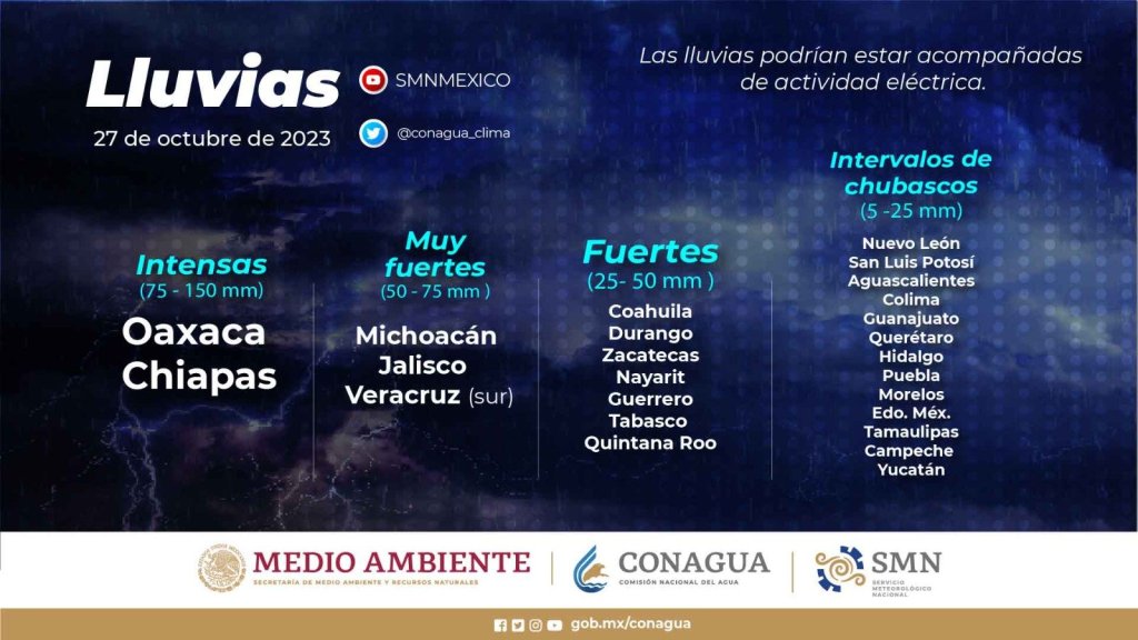 corriente en chorro subtropical generará lluvias fuertes en Coahuila, Durango y Zacatecas; chubascos en Aguascalientes, Nuevo León, San Luis Potosí y Tamaulipas;