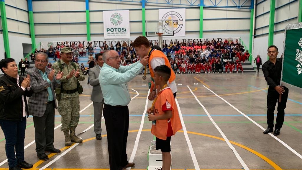 En el Gimnasio Auditorio de esta institución, el titular de la dependencia estatal, Crisógono Sánchez Lara, dijo que, en cumplimiento a la instrucción del Gobernador Ricardo Gallardo Cardona, se brinda apoyo a la niñez potosina para despegar hacia su pleno desarrollo, con competencias deportivas que tienen el propósito de fomentar estilos de vida saludable y valores como el juego limpio, el trabajo en equipo y el respeto a las reglas de la participación.