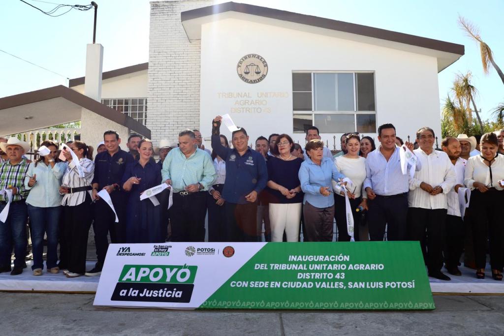 Ciudad Valles, SLP.- Más de 250 mil habitantes de ejidos y comunidades indígenas, pertenecientes a 29 municipios de San Luis Potosí y cinco de Tamaulipas, cuentan con todo el apoyo en certeza sobre la tenencia y regularización de la tierra, que brinda el Gobernador Ricardo Gallardo Cardona, quien inauguró el Tribunal Unitario Agrario Distrito número 43, en Ciudad Valles, para acercar la justicia a las familias de la Huasteca.