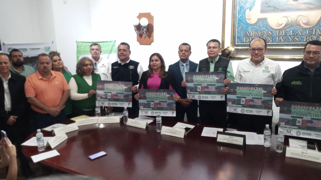 Neri Corpus.-El Instituto Nacional de Migración y dependencias de Seguridad presentaron la Tercera edición de la Caravana Migrante Potosino 2023, con el objetivo que los paisanos potosinos, tengan un viaje seguro esto luego de que al venir a México sufrían de robos durante el trayecto y los despojaban de todas sus pertenencias, por ello las autoridades los estarán acompañando desde la frontera de Texas hasta San Luis Potosi.