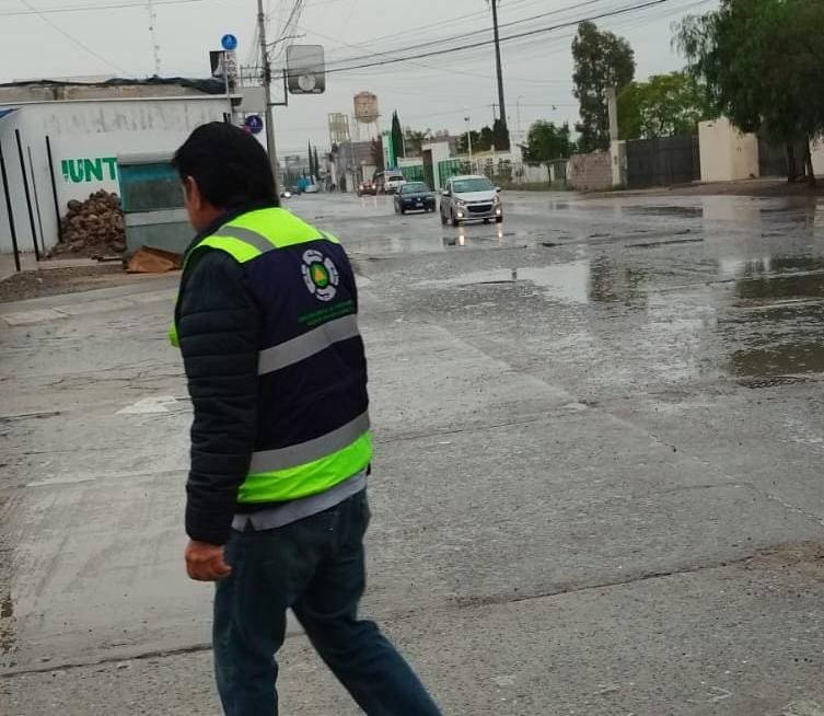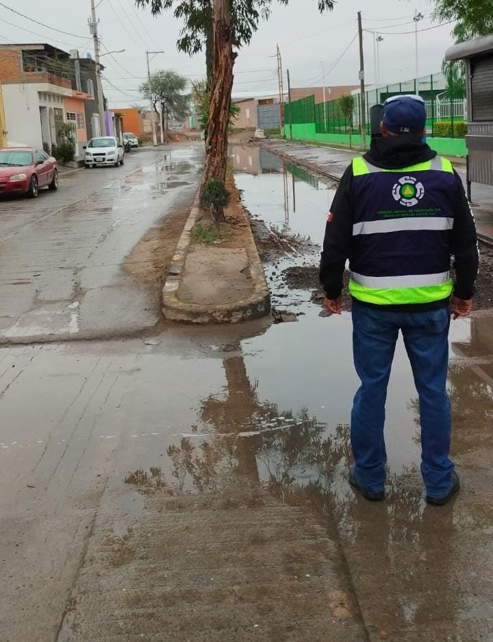 Para brindar apoyo inmediato en caso de ser necesario, personal de Protección Civil de Soledad de Graciano Sánchez realiza labores de monitoreo en zonas del municipio, donde comunmente resultan afectadas por precipitación pluvial.