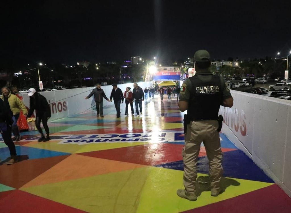 Detalló que, en apoyo al cuidado de las y los potosinos, en el juego del miércoles, se incrementó el estado de fuerza de seguridad con la participación de la Guardia Civil Estatal, Guardia Municipal, Policía Vial, Protección Civil Estatal y Municipal, seguridad privada, C5i2, drones, binomios caninos de la GCE, Comisión Estatal para la Protección contra Riesgos Sanitarios (Coepris) y la Policía de Investigación de la Fiscalía General del Estado, que en suma llegan a más de mil personas.