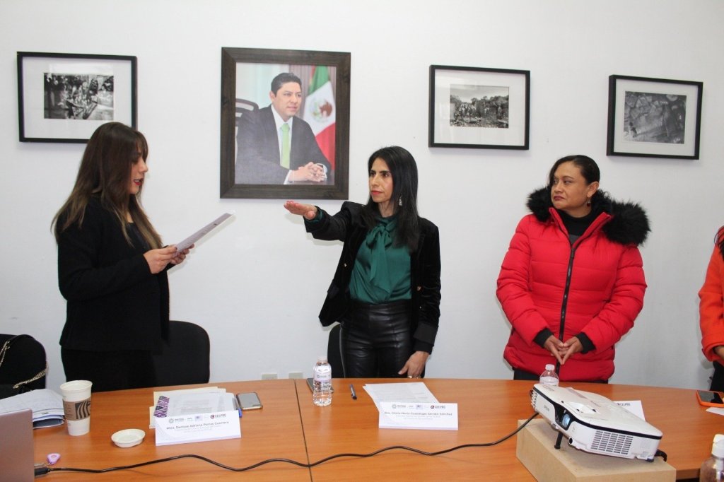 La toma de protesta se llevó a cabo en la sala de juntas del Instituto de las Mujeres y asistieron: la consejera presidenta del Consejo Estatal Electoral y de Participación Ciudadana (Ceepac), Paloma Blanco López, la secretaria técnica del OPPMSLP Gladys González Flores y representantes de partidos políticos.