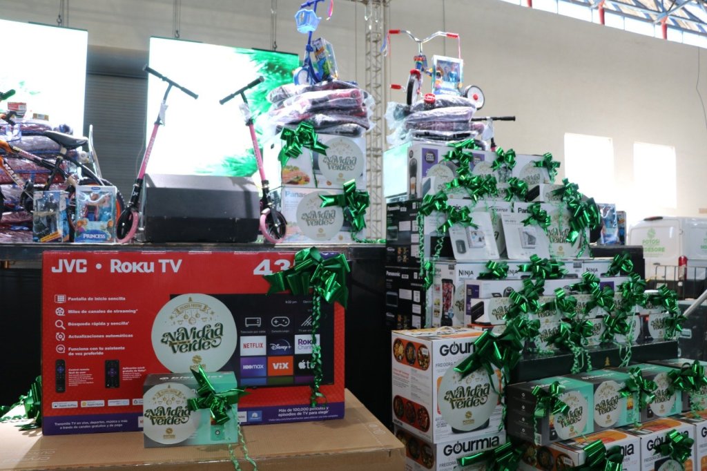 Durante la posada navideña se rifó un automóvil último modelo, tres concesiones; además de pantallas y electrodomésticos, así como la entrega de cobijas y juguetes para las hijas e hijos de las y los trabajadores del volante.