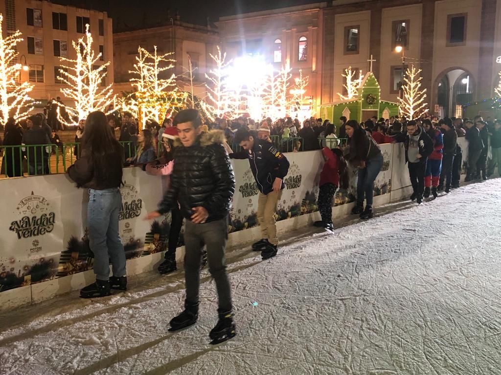 En la plaza de Fundadores, la pista de patinaje sobre hielo, casitas, árboles iluminados, el buzón para dejar las cartas a Santa Claus y el árbol monumental, son el atractivo favorito de las y los visitantes.