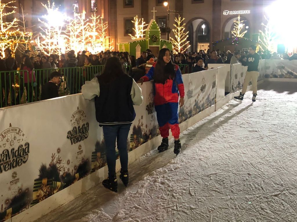 • La pista de patinaje sobre hielo se ha convertido en el atractivo favorito de las familias potosinas y visitantes.