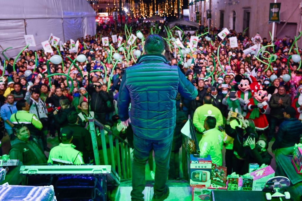 En la plaza principal de Soledad, cientos de familias recibieron al Gobernador Ricardo Gallardo quien en su discurso les deseó una feliz navidad y un 2024 más próspero.