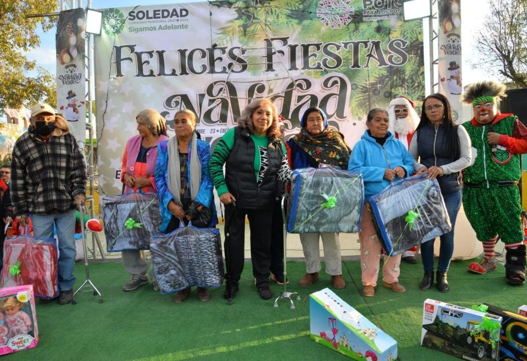 Por la noche, en la cabecera municipal, la alcaldesa acompañó al Gobernador del Estado, Ricardo Gallardo, en la magna Posada Navideña que reunió a miles de soledenses que pudieron disfrutar y cantar los éxitos de Los Cardenales de Nuevo León, además de recibir regalos, juguetes y cobertores de manos del propio mandatario estatal.