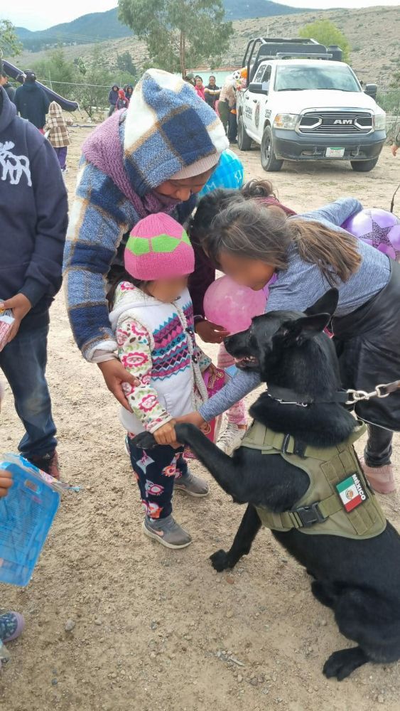 En vísperas de la navidad, niñas y niños de Mexquitic de Carmona vivieron momentos de ilusión, al recibir un juguete y dulces gracias a la solidaridad de las y los integrantes de la Guardia Civil Estatal (GCE), acciones organizadas por el departamento de Gabinete Médico, Agrupamiento K9 y la Unidad de Prevención del Delito.