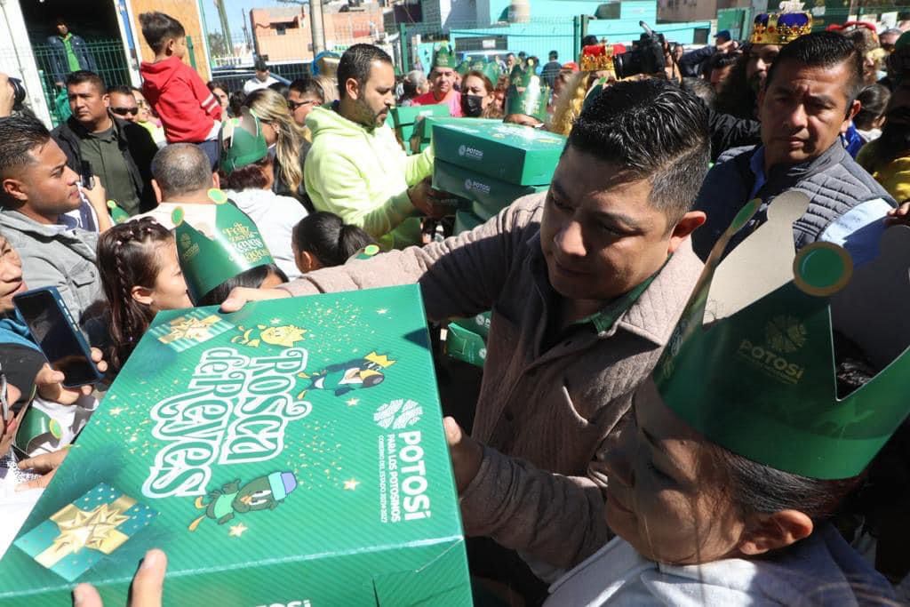 Los rostros de alegría de las niñas y niños se iluminaron al recibir sus juguetes de manos del Gobernador Ricardo Gallardo, así como de los Tres Reyes Magos que lo acompañaron e igualmente, cientos de madres de familia, adultos mayores y hasta personas que viajaban en transporte público, recibían su Rosca de Reyes, agradeciendo la generosidad y la voluntad para seguir apoyando a quienes más lo necesitan.