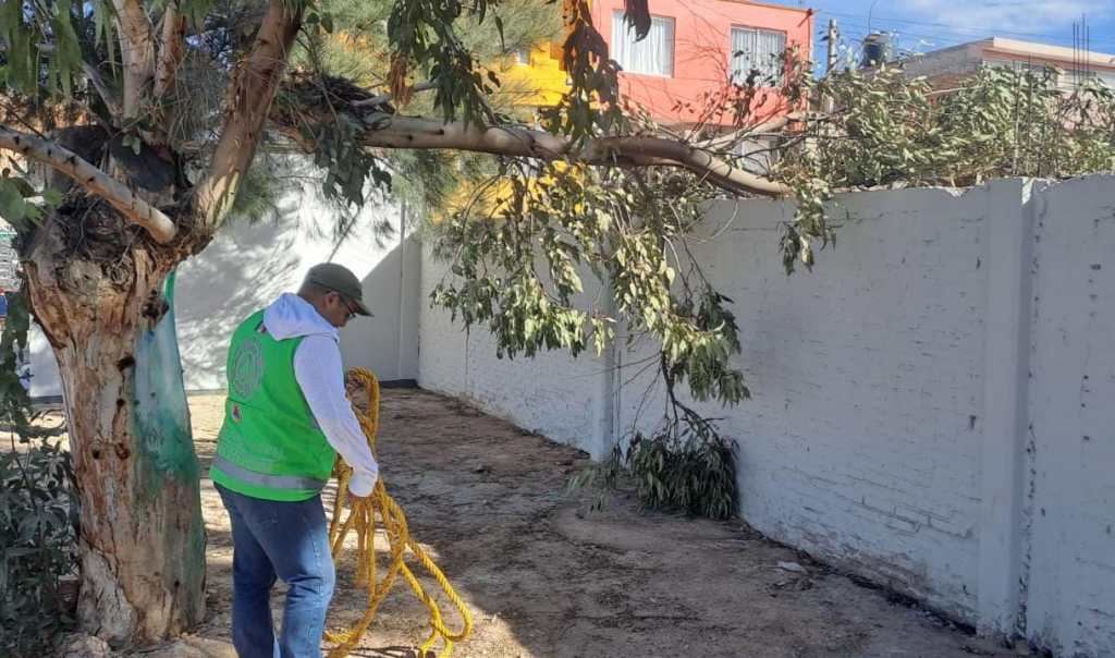Informó que a temprana hora de este martes 9 de enero, se atendió oportunamente el reporte de un árbol recargado en la barda perimetral de la escuela “Francisco González Bocanegra” en Avenida de los Pinos en la colonia Hogares Ferrocarrileros, en donde se procedió a talar la rama de siete metros que cayó sobre la infraestructura sin provocar daños mayores. También se retiró un árbol que cayó en la Avenida Libertad frente, en donde se procedió a retirar el arbusto en su totalidad para liberar el paso de peatones y vehículos