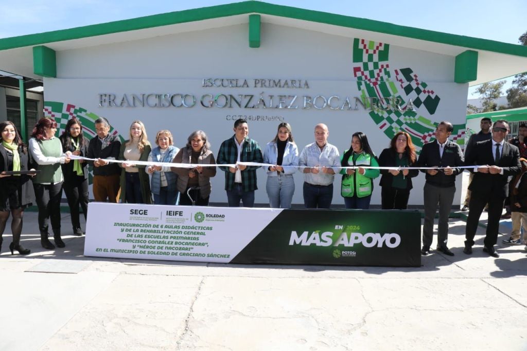 Tras la inauguración de la rehabilitación y sustitución de seis aulas de las primarias, «Francisco González Bocanegra», turno matutino y «Héroes de Nacozari», turno vespertino, en Soledad de Graciano Sánchez, las y los beneficiarios de las obras, reconocieron el trabajo y la visión del Gobernador Ricardo Gallardo Cardona, por consolidar espacios incluyentes que generarán mayor bienestar y oportunidades para todas y todos.