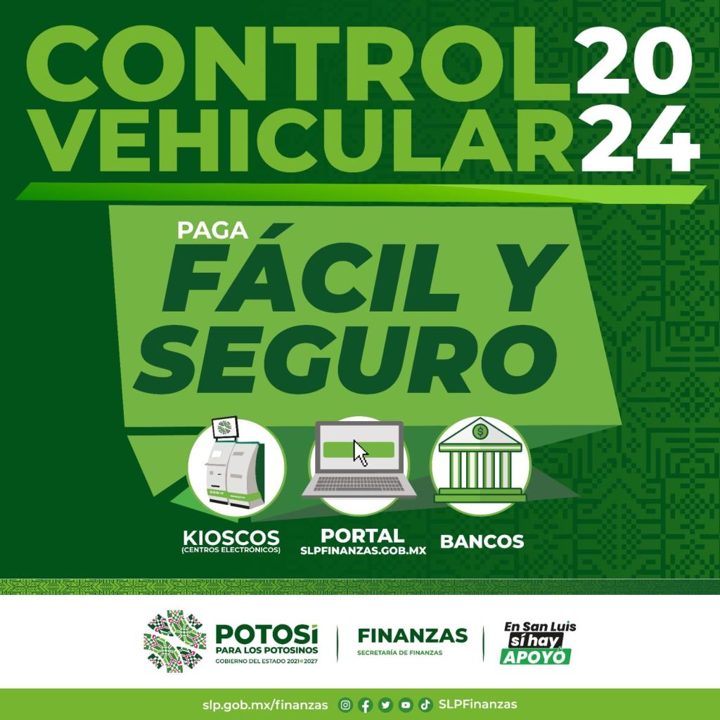 En apoyo a las y los potosinos para facilitar el pago de trámites gubernamentales, la Secretaría de Finanzas (Sefin), implementó un amplio sistema de servicios y herramientas digitales, por lo que quienes vayan al corriente en sus contribuciones de Control Vehicular, pueden realizar su pago de forma segura, fácil y rápida, en kioscos, bancos o a través de la página de internet, sin tener que acudir a oficinas recaudadoras.