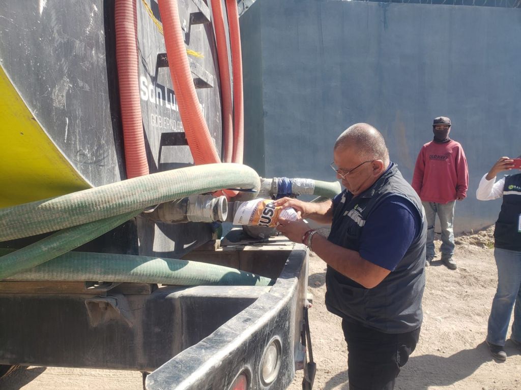 En apoyo a las y los potosinos, para evitar riesgos sanitarios por consumo de agua contaminada, los Servicios de Salud, a través de la Comisión Estatal para la Protección Contra Riesgos Sanitarios (Coepris), realizó durante el 2023 la revisión sanitaria a 147 pipas, así como 22 mil 234 determinaciones de cloro en pozos y en llaves de abasto de agua potable.