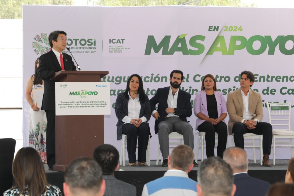 Resultado de la firma de convenio de colaboración del Instituto de Capacitación para el Trabajo (Icat) y la empresa japonesa Daikin, se invirtieron 40 mil dólares para habilitar los espacios que permitirán reclutar y capacitar a miles de potosinas y potosinos.