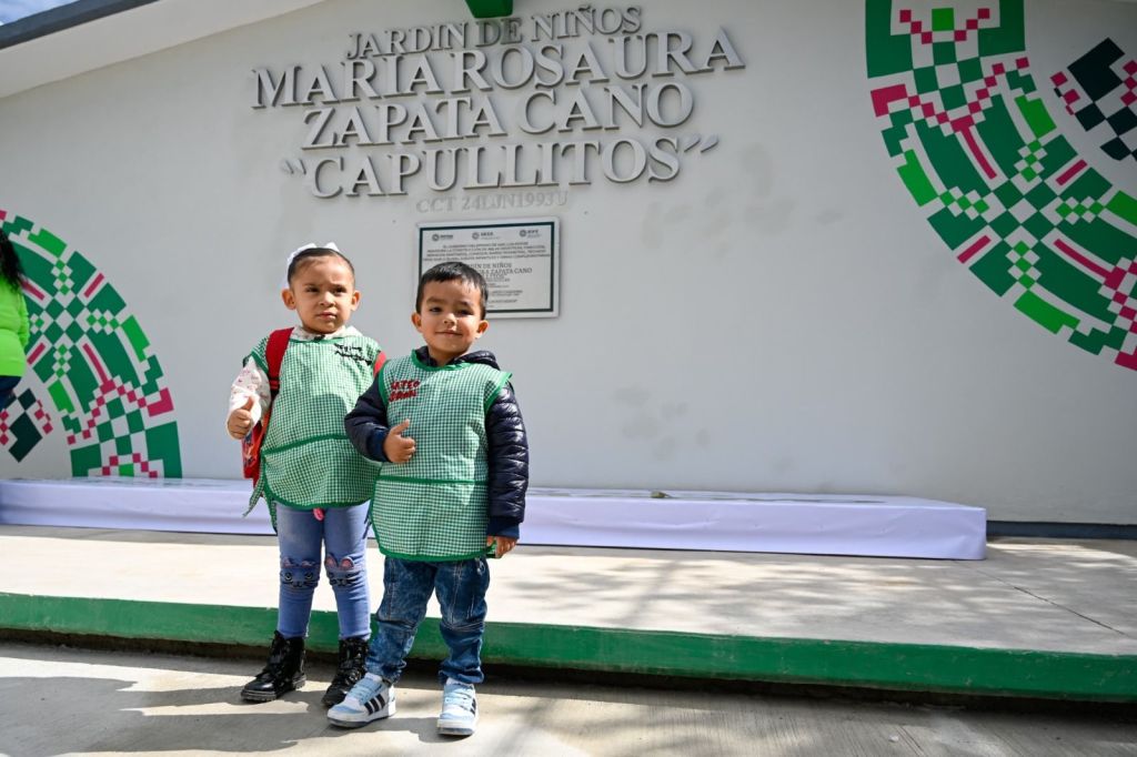 El nuevo jardín de niños contará con tres aulas didácticas, una dirección, un módulo de servicio sanitarios, comedor, plaza cívica, barda perimetral, techo, área de juegos infantiles, bodega, cisterna y obras complementarias.