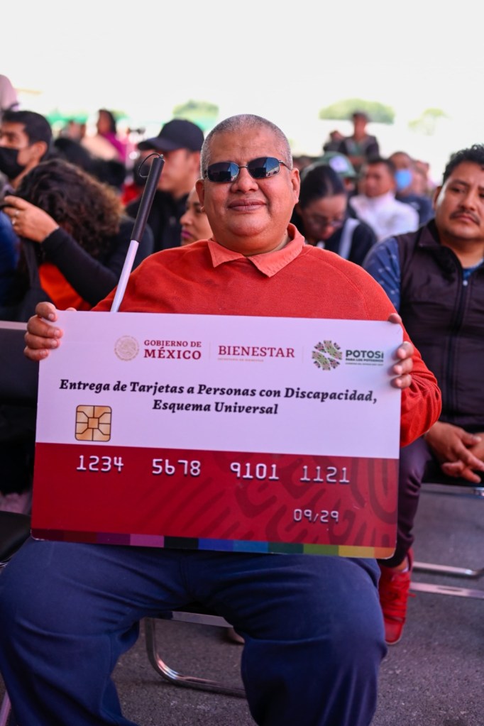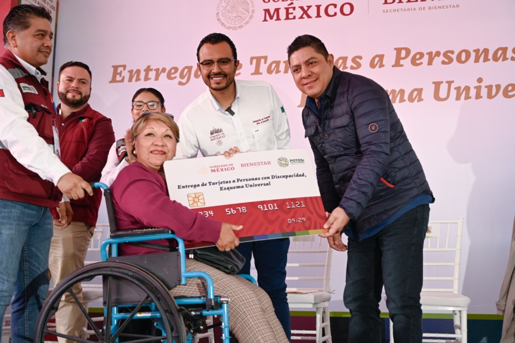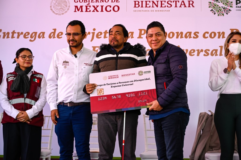 Acompañado por la presidenta honoraria del Sistema Estatal para el Desarrollo Integral de la Familia (DIF), Ruth González Silva, en las instalaciones del Centro de Rehabilitación y Educación Especial (CREE), Gallardo Cardona entregó tarjetas de pensión y destacó que las y los potosinos con discapacidad, tendrán el derecho de este apoyo, ya que se blindará en la Constitución del Estado; también agradeció al Gobierno del Presidente López Obrador, por este esfuerzo que brindará bienestar a las familias potosinas.