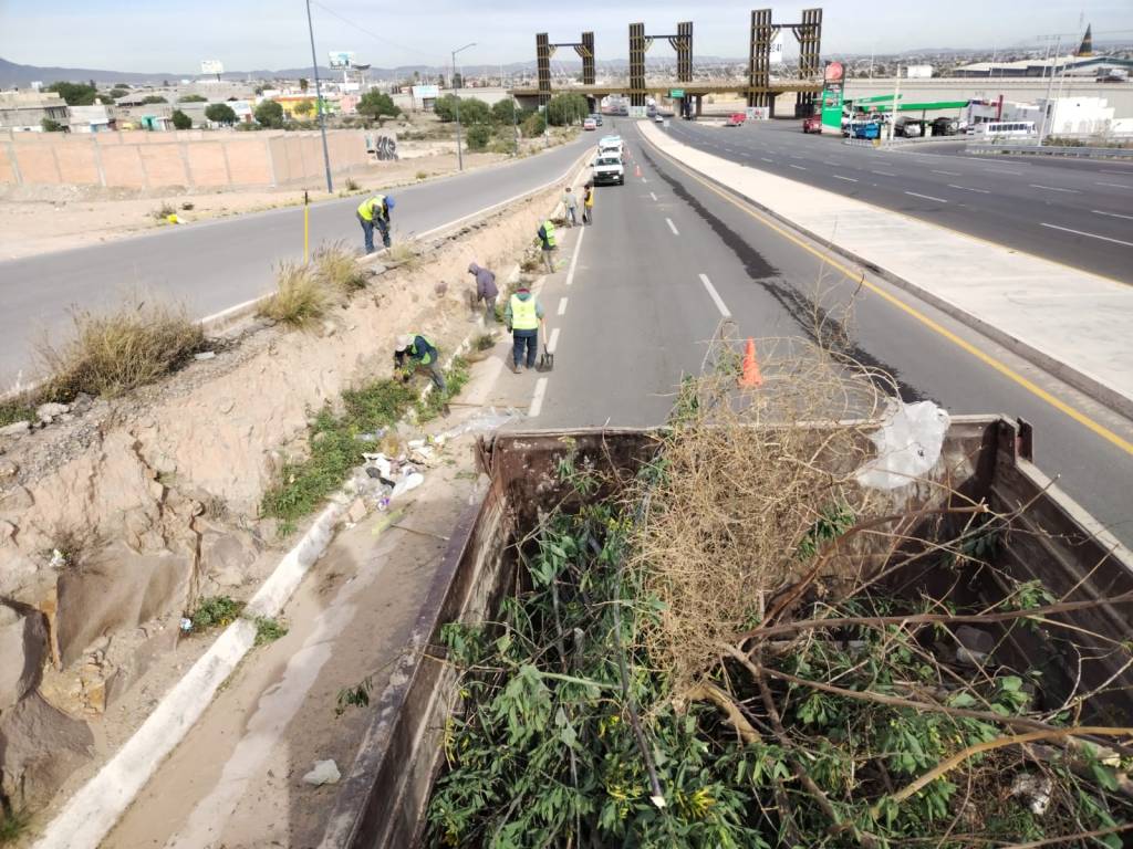 De acuerdo con la instrucción del Gobernador de San Luis Potosí, Ricardo Gallardo Cardona, y tras el anuncio de la construcción del puente que conectará a esta vía con el eje 122, el titular de la JEC, Francisco Reyes Novelo, informó que cuadrillas de la dependencia estatal trabajan en la conservación periódica y rutinaria con trabajos de desmonte, chapoleo y limpieza de las laterales de la vía, con el fin de mantenerla en buenas condiciones para la futura continuación del proyecto.