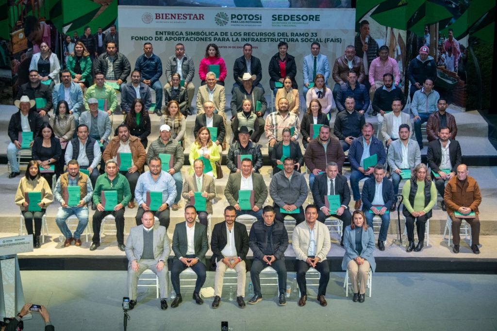 Con la entrega de cinco mil 766 millones 934 mil 281 pesos a las y los alcaldes de los 58 municipios correspondientes a las aportaciones del Ramo 33 y el Fondo de Fomento Municipal (FFM), este 2024 hay más apoyo a las familias potosinas para que tengan mayor bienestar en materia de educación, salud, infraestructura básica y educativa, fortalecimiento financiero, seguridad pública, y programas alimenticios y de asistencia social.