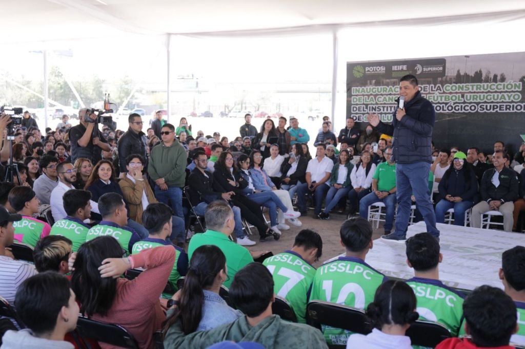 Dos mil jóvenes estudiantes del Instituto Tecnológico Superior de San Luis Potosí, así como las futuras generaciones, contarán con mejores instalaciones deportivas para su formación física e intelectual, mediante la inauguración de la cancha de fútbol y el arranque de los trabajos de construcción del nuevo gimnasio que el Gobernador Ricardo Gallardo Cardona, realizó este martes en las instalaciones de esta institución.