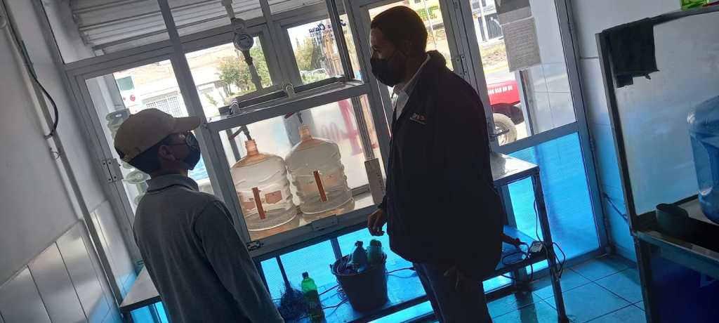 Detalló que durante las revisiones se comprueba que: la cabina de llenado esté aislada; se realicen procesos de ósmosis inversa y luz ultravioleta; análisis microbiológicos y de flúor al producto; el agua que se utiliza esté clorada; los garrafones j lavados en su interior con sanitizante especial; el establecimiento realice fumigaciones; el área de proceso cuente con lavabo para aseo de manos; uso de cofia, mascarilla, bata o mandil; uñas cortas sin esmalte o alhajas y limpieza.