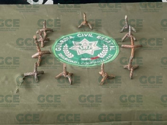 Además, procedieron al aseguramiento de una camioneta marca Chevrolet, línea Tahoe, sin placas, así como a la recolección de 11 objetos de varilla, denominados como “poncha llantas”.