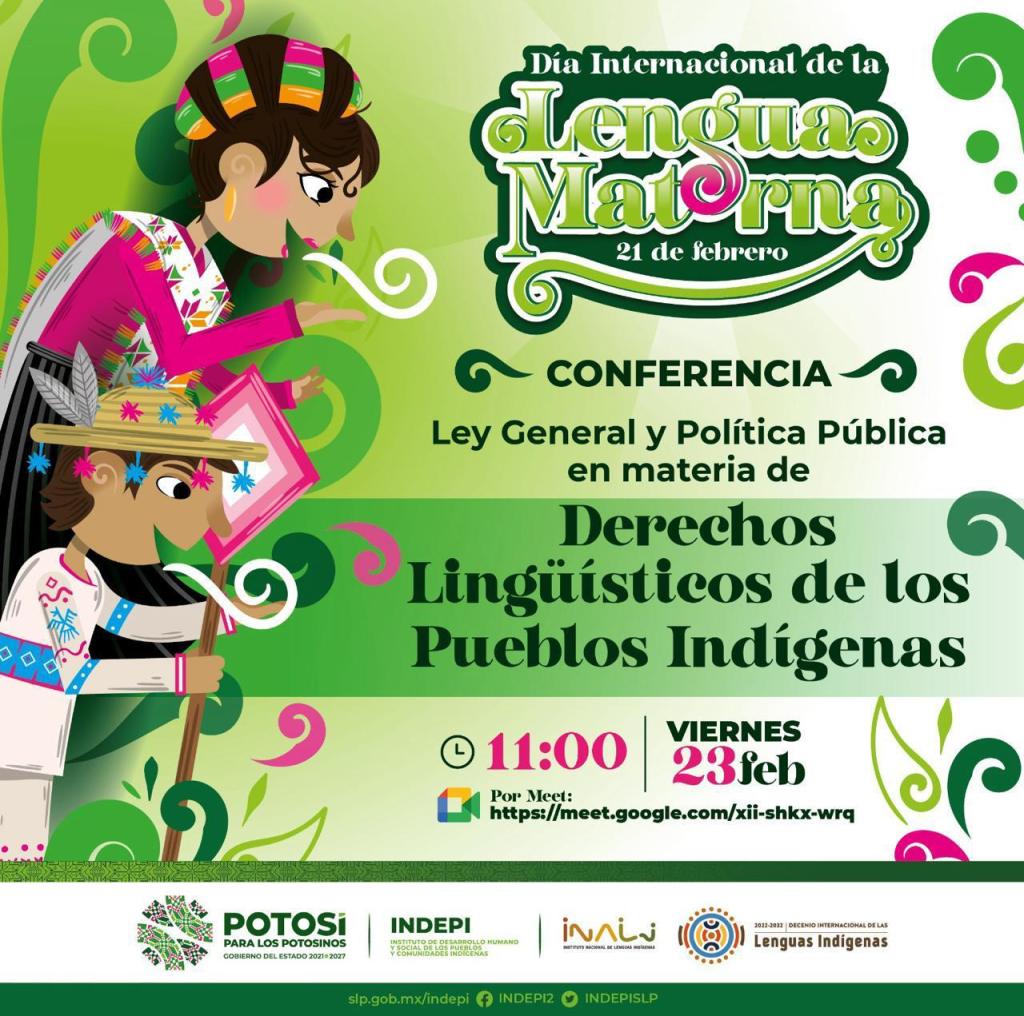 Para conmemorar el Día Internacional de la Lengua Materna, el Gobierno del Estado, a través del Instituto de Desarrollo Humano y Social de los Pueblos y Comunidades Indígenas (Indepi) llevará a cabo los días 22 y 23 de febrero una jornada de sensibilización y reflexión en torno a la conservación, revitalización y promoción de las lenguas indígenas de nuestro Estado, con lo que se impulsa más apoyo a todas las familias potosinas.