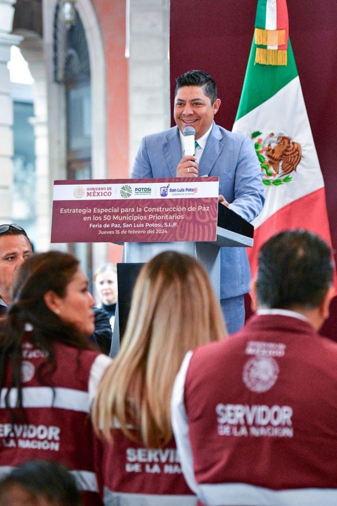 En el marco de la Estrategia Especial de Construcción de Paz, este jueves el Gobernador Ricardo Gallardo Cardona inauguró la Feria de la Paz, donde participan cerca de 50 dependencias acercando los programas y servicios a las y los potosinos, además tomó protesta a las personas responsables darán continuidad a las acciones de prevención en sus colonias.