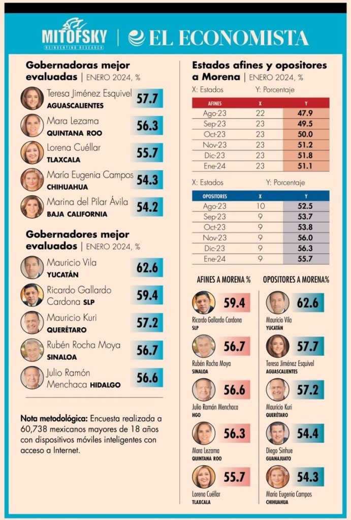 El Ranking Mitofsky destaca que San Luis Potosí se ubica en el segundo lugar, solo después de Yucatán y por encima de estados como Aguascalientes, Querétaro, Sinaloa, Hidalgo, Quintana Roo, Tlaxcala, Guanajuato y Chihuahua y resalta que Ricardo Gallardo se posicionó como el primer lugar a nivel nacional entre los gobernadores afines a Morena.