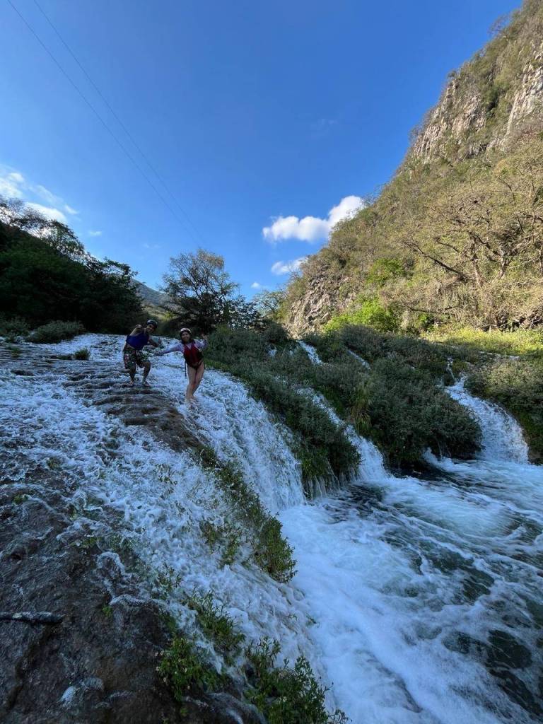 El Paraje “Cascadas de Micos” en Ciudad Valles se mantiene con agua y abierto al público pese al fuerte estiaje que se vive año con año en esta región del Estado.