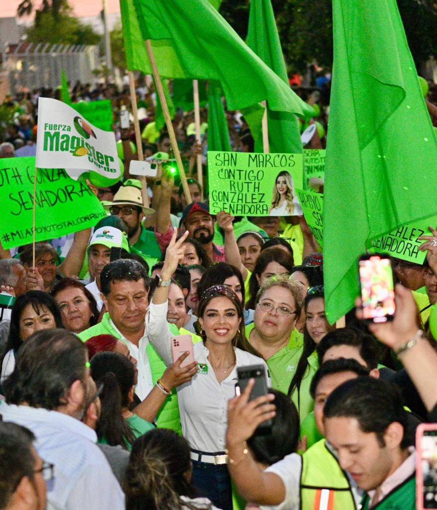 Junto a su compañero de fórmula al Senado, Gilberto Hernández Villafuerte y el candidato a diputado federal por el Tercer Distrito, Oscar Bautista Villegas; Ruth González convocó a las y los potosinos para votar por los candidatos del Partido Verde y garantizar así los programas sociales y el crecimiento económico para toda la región.
