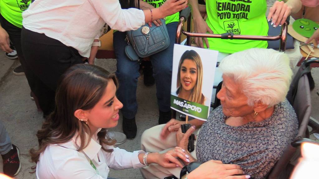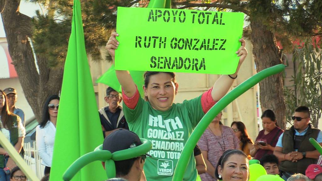Neri Corpus.-La candidata al Senado de la República por el Partido Verde Ecologista de México (PVEM), Ruth González Silva visitó la Colonia Industrial Aviación, dijo que sus principales compromisos es legislar para seguir creando apoyos a las mujeres, madres solteras,niñas y adultos mayores del estado de San Luis Potosí.
