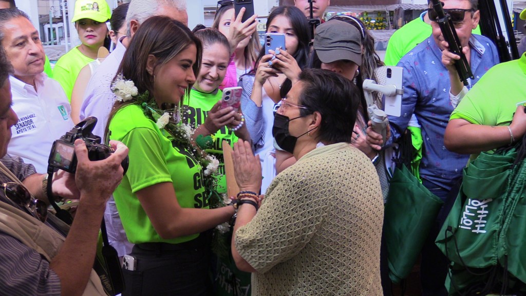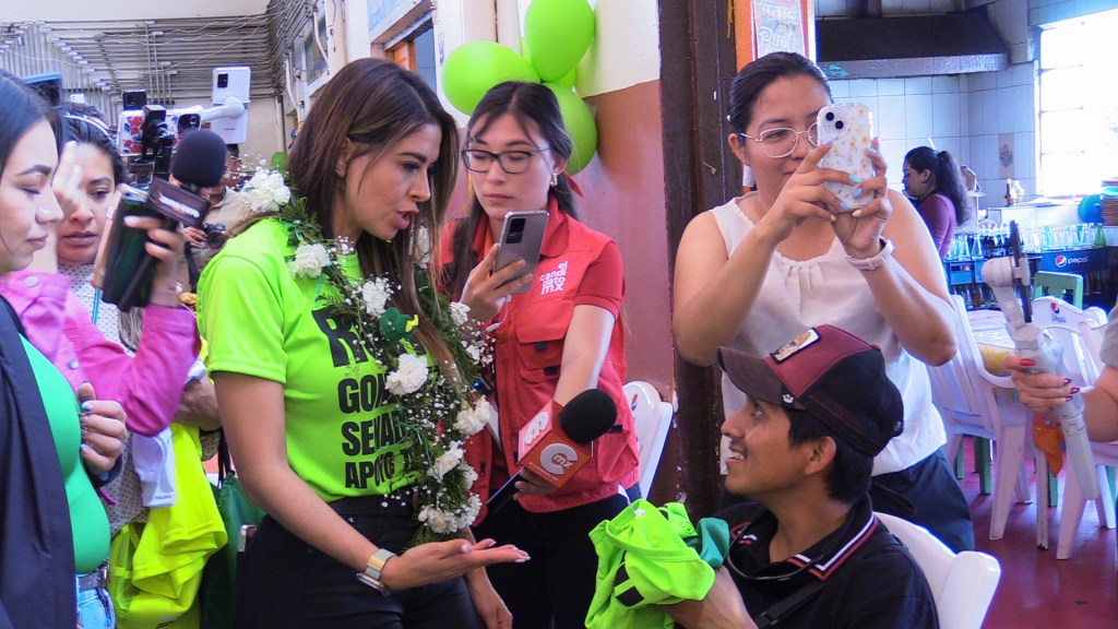 La candidata al senado de la República por el partido verde ecologista de México Ruth González Silva visitó el Mercado Hidalgo donde se reunió con locatarios, y realizó el recorrido por los diferentes pasillos donde la recibieron con flores mostrándoles su apoyo al senado.