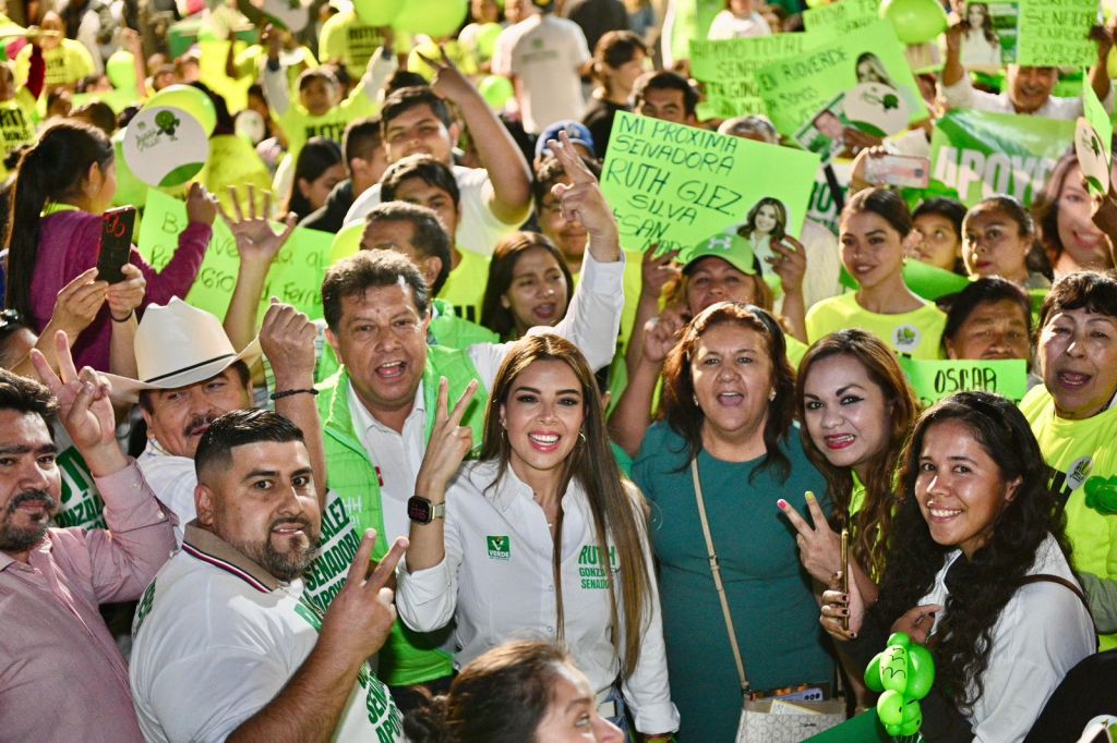 “Por eso pido su voto para que esté próximo 2 de junio acudan a las urnas y voten por el Partido Verde, porque somos mujeres y hombres de palabra que hemos dado resultados, y es necesario dar continuidad a los programas sociales y proyectos de infraestructura, educativos, generación de empleo y salud que ha impulsado el Gobierno del cambio”, declaró Ruth González, candidata al Senado.