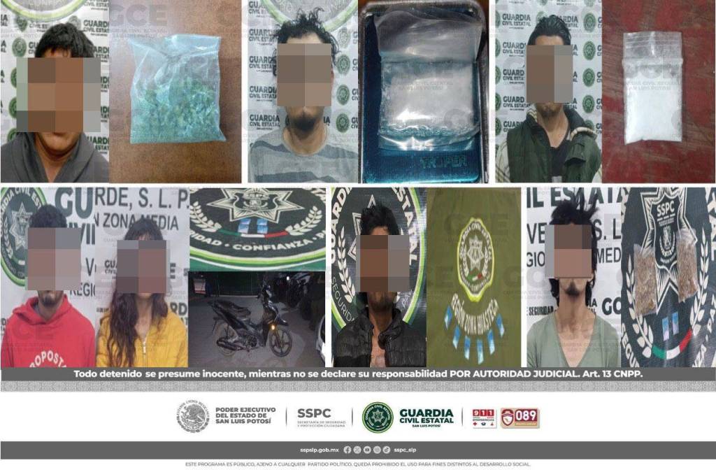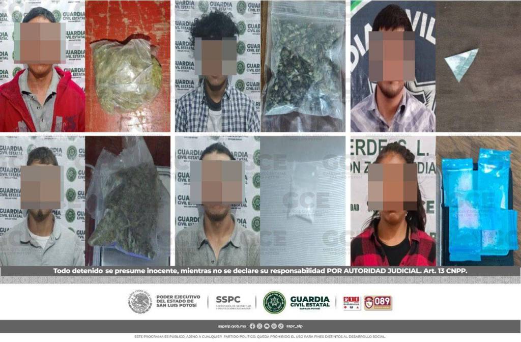 S.L.P.- Derivado de los operativos de seguridad y vigilancia, realizados por agentes de la Guardia Civil Estatal (GCE) 19 personas fueron detenidas por el probable delito de posesión de estupefacientes.