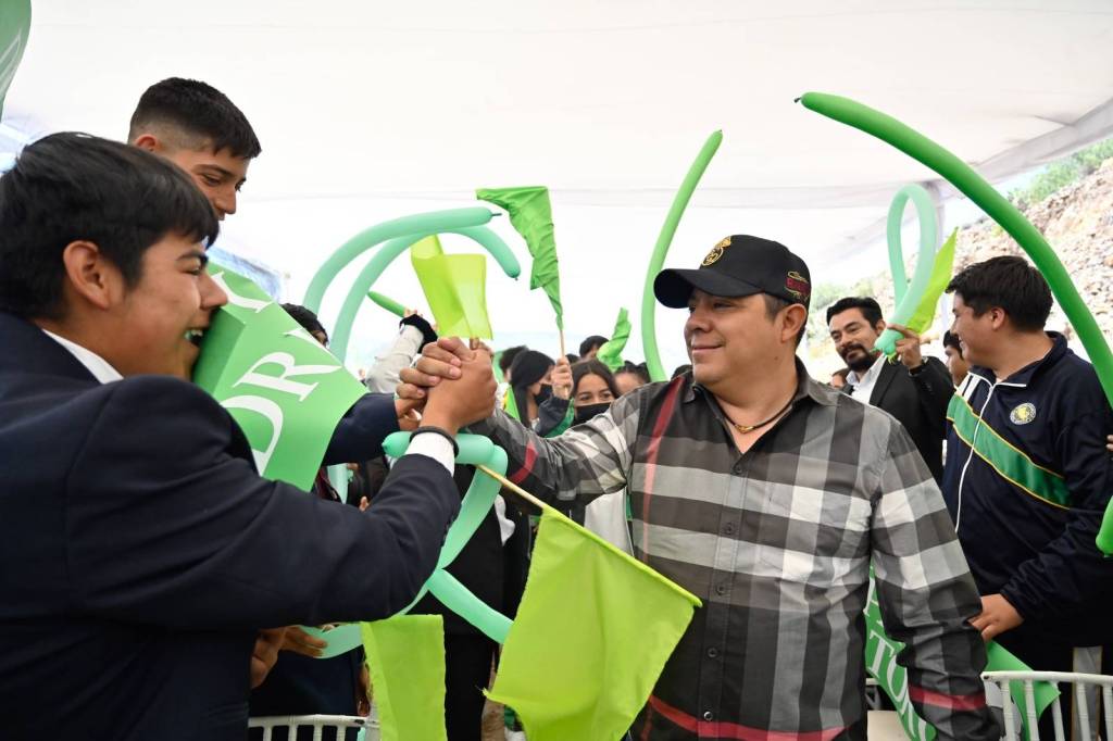Con una inversión pública superior a los 12.5 millones se construyeron tres aulas didácticas, un módulo de servicios sanitarios, una dirección, una aula de computación y muros de contención, red eléctrica, cisternas para captación del agua, plaza cívica, drenaje y se adquirió mobiliario, para que las y los jóvenes tengan un mayor rendimiento escolar.