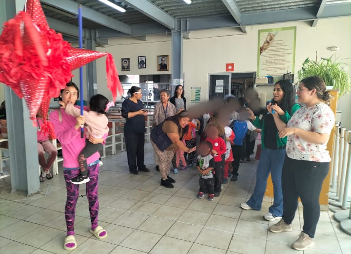 Durante el convivio las y los menores disfrutaron de actividades recreativas en temas de la salud e higiene, juegos tradicionales, partieron una piñata y recibieron pastel, bolsitas de dulces y juguetes.