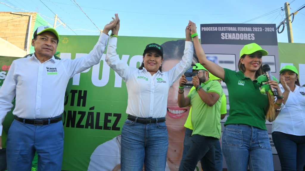 En este recorrido, Sonia Mendoza estuvo acompañada de la candidata al Senado, Ruth González, quienes pidieron el voto cinco de cinco para los candidatos y candidatas del Partido Verde, «porque las cosas sí se pueden hacer y hacer bien».
