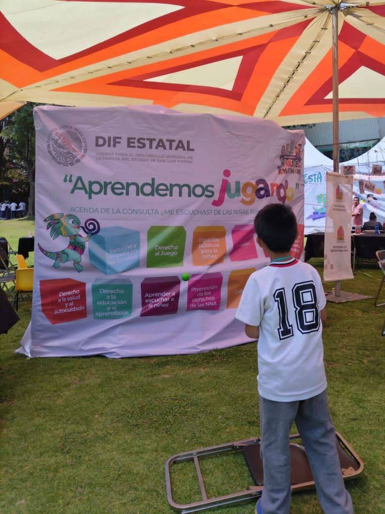 La actividad fue convocada por el Sistema Nacional DIF para brindar a las y los niños información sobre sus derechos a través de actividades recreativas, de ciencia y tecnología.