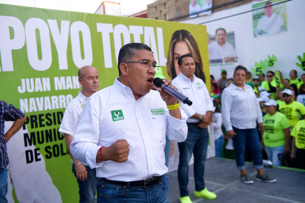 La visita a la colonia El Morro y a la cabecera municipal de Soledad, Juan Manuel Navarro Muñiz candidato a la Presidencia Municipal de Soledad acompañado por Ruth González Silva, candidata al Senado de la República, se convirtió en una gran fiesta popular. Las candidatas y los candidatos estuvieron arropados por la ola verde formada por cientos de simpatizantes.