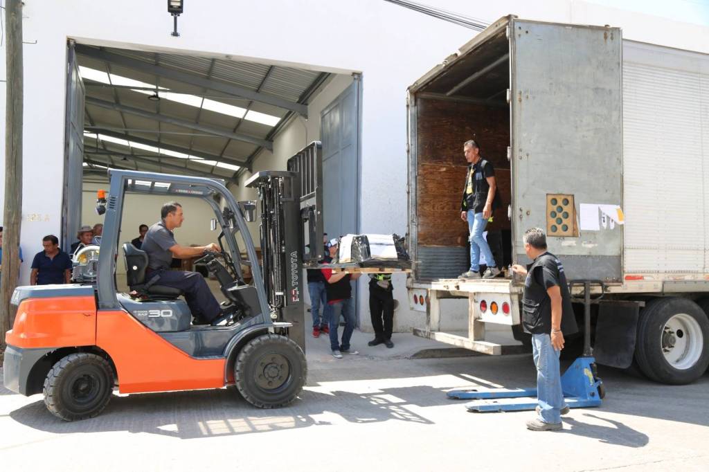 El Secretario Ejecutivo del CEEPAC Mauro Eugenio Blanco Martínez; los consejeros electorales Luis Gerardo Lomelí Rodríguez y Adán Nieto Flores; representantes de partidos políticos y funcionariado del organismo electoral, fueron testigos de la llegada de 2 millones, 235 mil boletas aproximadamente, que se utilizarán en la elección de diputaciones del próximo 2 de junio.