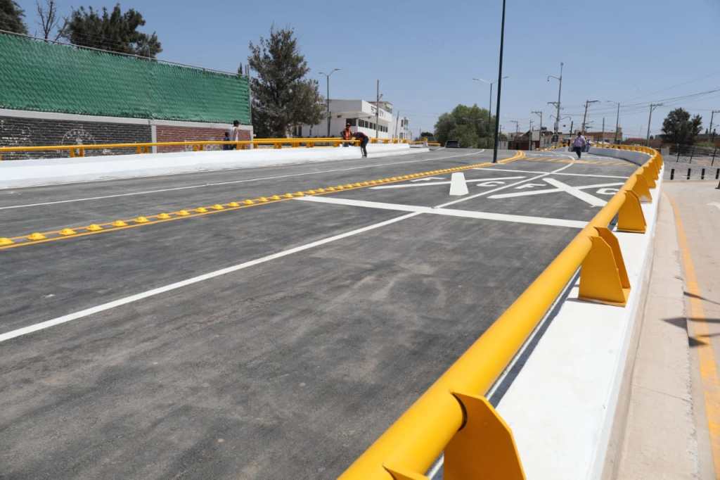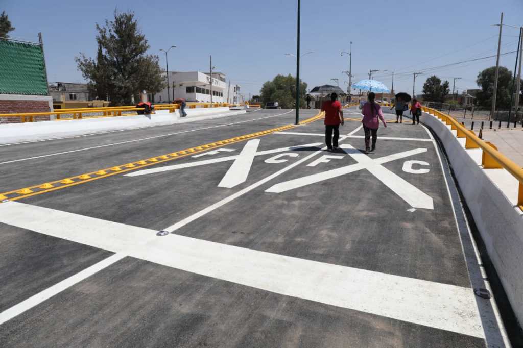 El nuevo puente, ubicado en el cruce con la calle San Lorenzo, en la colonia San José, cuenta con cuatro carriles, dos por sentido, un paso peatonal, alumbrado público nuevo, señalamientos horizontales y verticales, rehabilitación de áreas verdes, construcción de red pluvial y sanitaria, y la aplicación de dos mil metros cuadrados de concreto hidráulico.